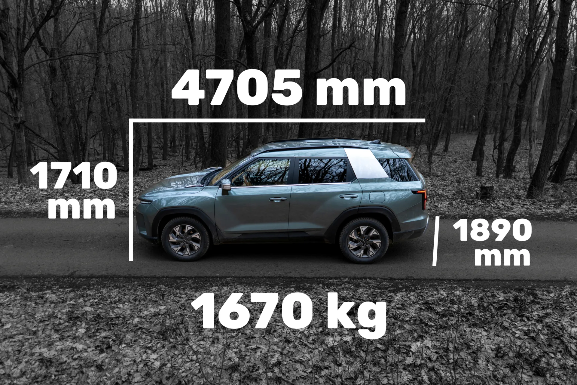 Az autó méretei pedig a következők: hossza 4705 mm, szélessége 1890 mm, magassága 1710 mm – tengelytávolsága 2680 mm. A kerekek nyomtávolsága elöl 1610, hátul 1630 mm.
