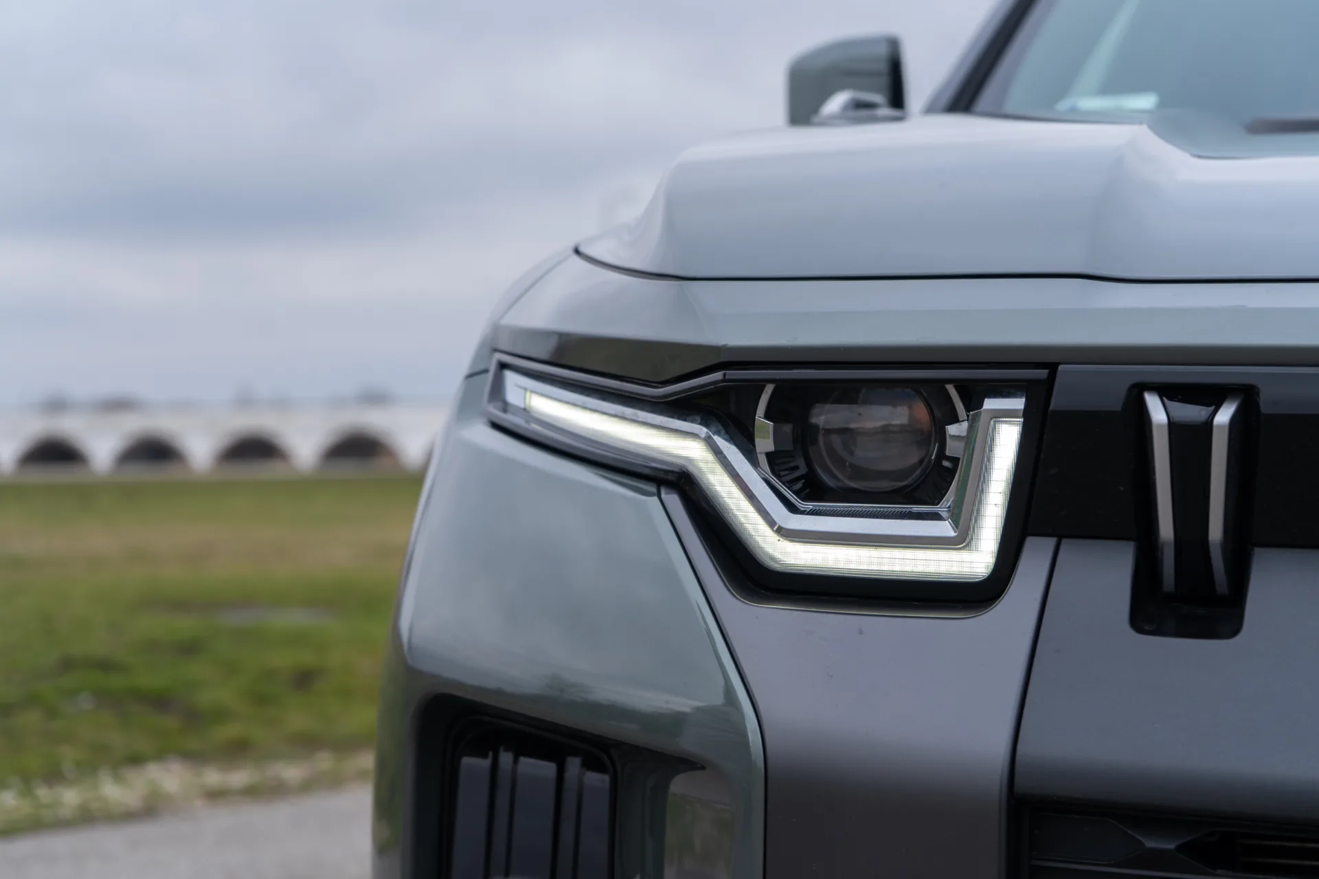 Ha az elejét figyeljük, akkor három fő említésre méltó pontja van: ez az érdekes hűtőmaszk, különleges mintákkal és a kissé Jeep-hatású elemekkel, a minimalista, de mégis robosztus LED-es lámpatestek között. És nem elhanyagolható a kis piros színfolt, ami egy vontatószemtakaró elem, a gyártó sajátos megoldása.