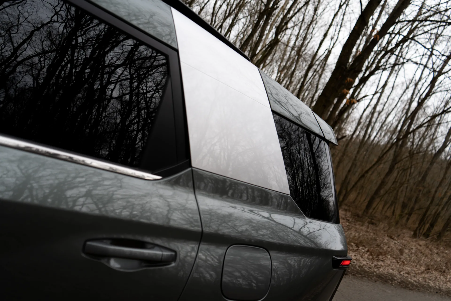 Közeledve a hátsójához, a C-oszlopon lévő szürke borítású díszelem is megéri az említést, szintúgy mint a cápauszony antenna és a 18 colos Diamond-Cut könnyűfém keréktárcsák.