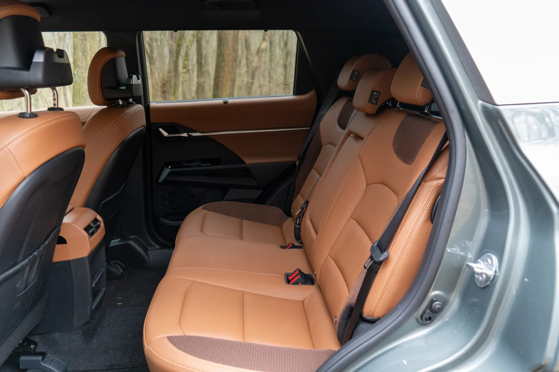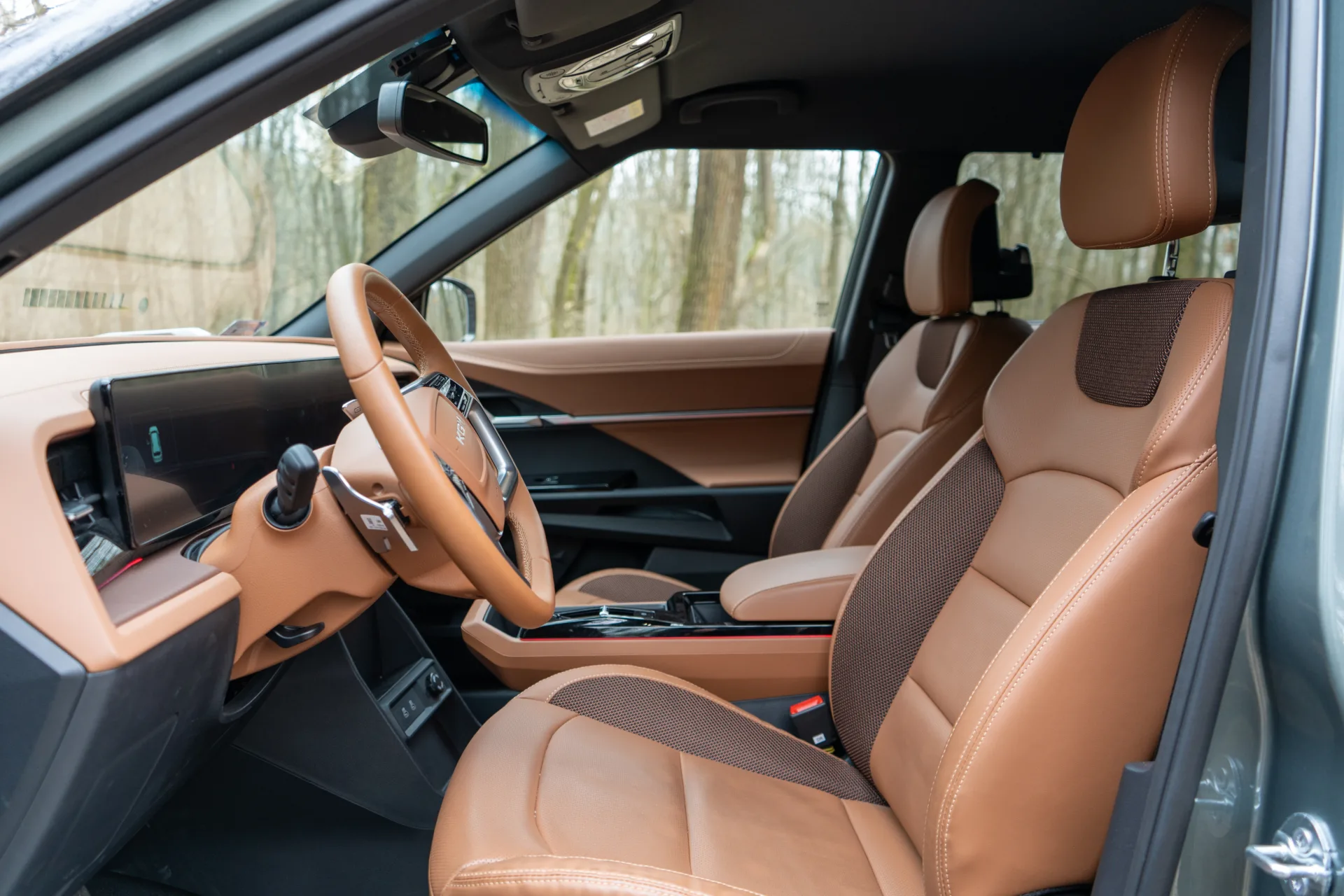 Az ülései is szintén bőr borítással rendelkeznek, az ülőfelületet Cross Brushed Metal mintázattal látták el, az oldalain pedig TPU és szövet ötvözete található, Wave Black mintával. Mindemellett az első ülések fűthetőek és hűthetőek, a megszokott három fokozatban, a sofőrülés elektromosan állítható és elektromos deréktámaszt is kapott, az utasoldali ülés viszont manuálisan állítható. Cserébe a hátul ülők is kaptak ülésfűtést, ami kifejezetten növeli a luxusérzetet. Emellett az első ülések fejtámlája akasztóként is használható.